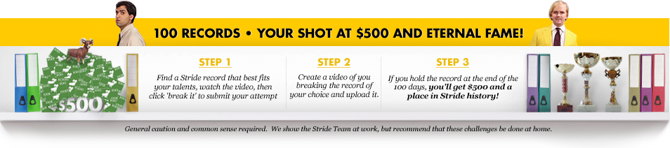 broke each of the 100 world records by The Stride Marketers. In the event of a tie, the prize will be evenly distributed/split between the tied